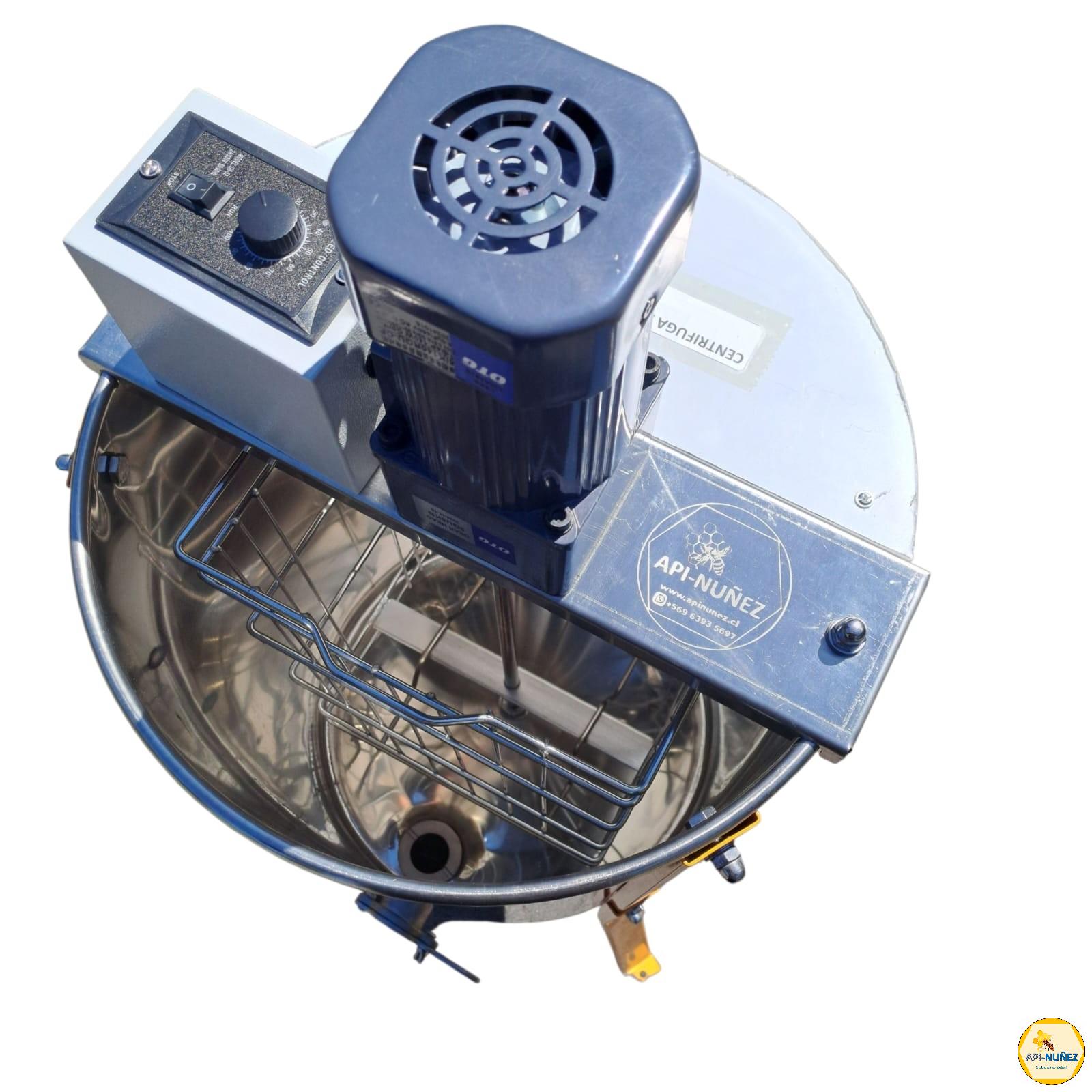 CENTRIFUGA 2 MARCOS ELÉCTRICA La centrífuga api-nuñez de 2 marcos es una herramienta indispensable para pequeños y medianos apicultores que buscan eficiencia, durabilidad y facilidad de uso. Su estructura en acero inoxidable de grado alimentario garantiza una extracción higiénica, segura y resistente a la corrosión. Características técnicas: