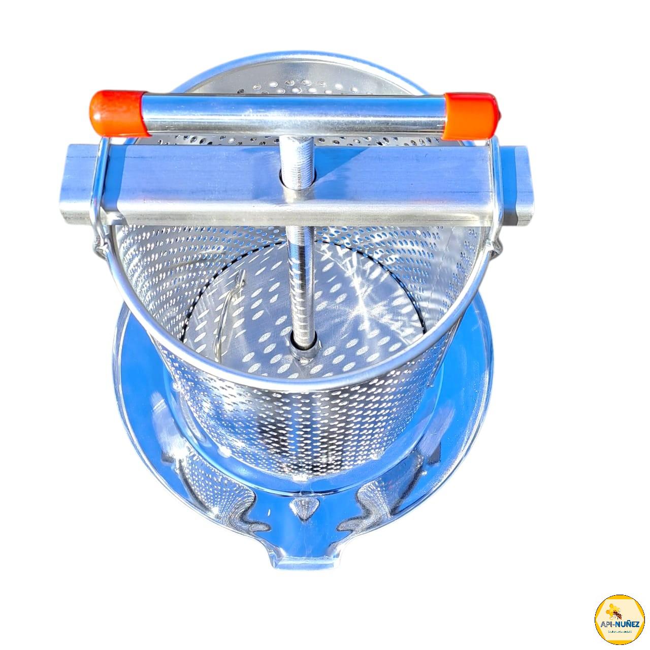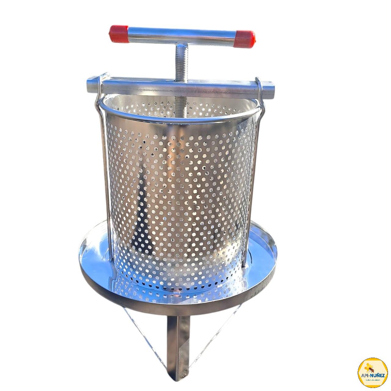 Esta prensa es una herramienta esencial para apicultores que buscan eficiencia en la recuperación de miel contenida en los opérculos de cera. Su estructura sólida y malla de acero permiten una filtración efectiva sin comprometer la calidad del producto.