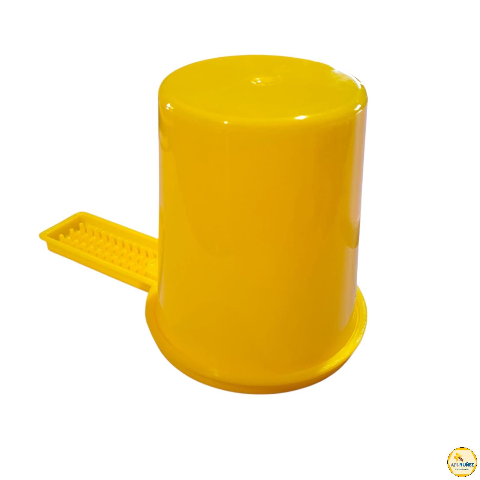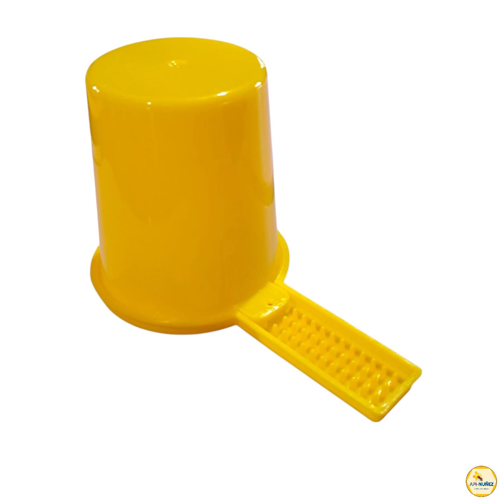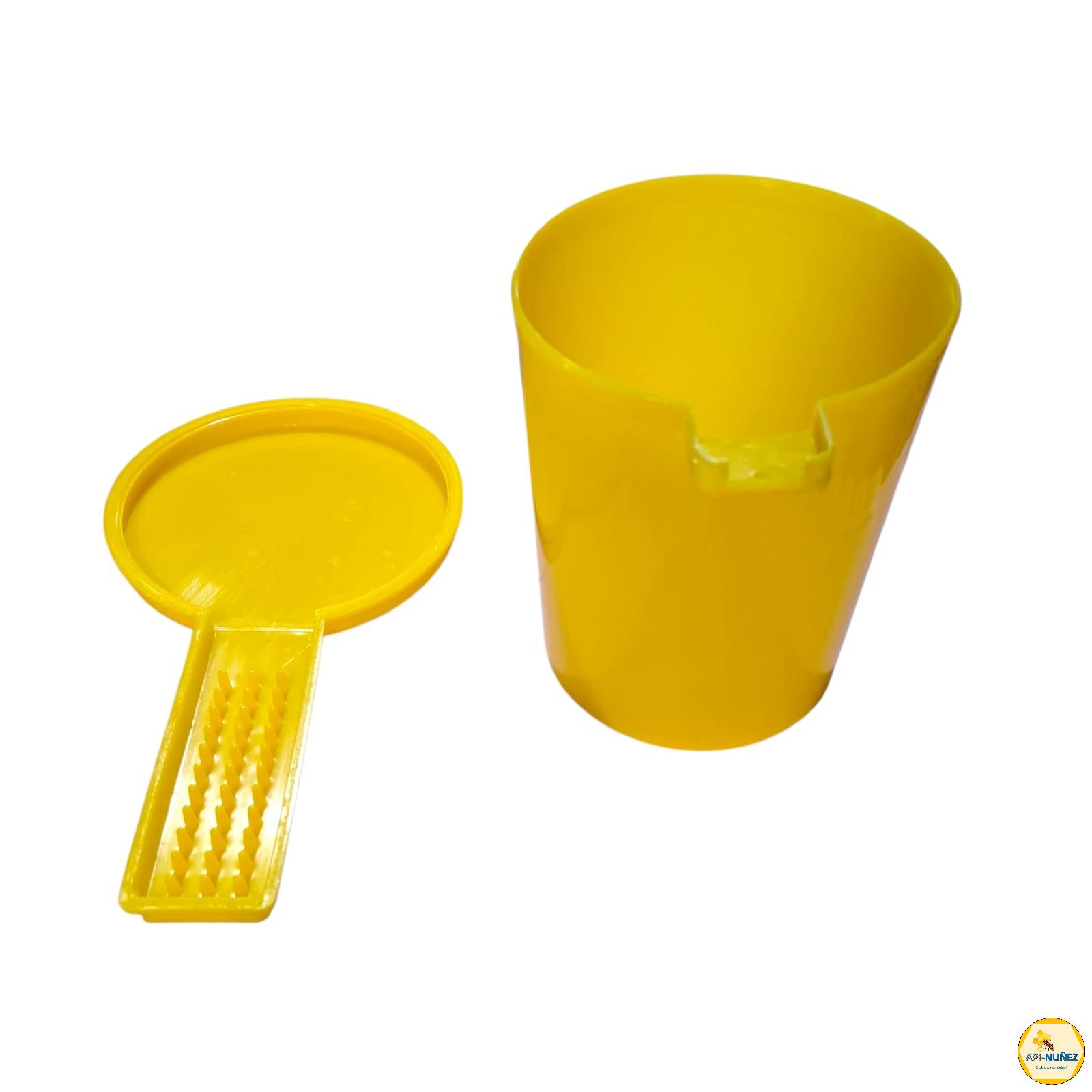 ALIMENTADOR DE PIQUERA 500 CC AMARILLO El alimentador de piquera API-NUÑEZ es un dispositivo práctico y eficiente diseñado para suministrar alimento líquido (jarabe de azúcar, agua o suplementos nutricionales) a las colmenas directamente desde la entrada (piquera). Su capacidad de 500 cc lo hace ideal para alimentaciones puntuales o de refuerzo, especialmente en épocas de escasez de néctar. Características principales: