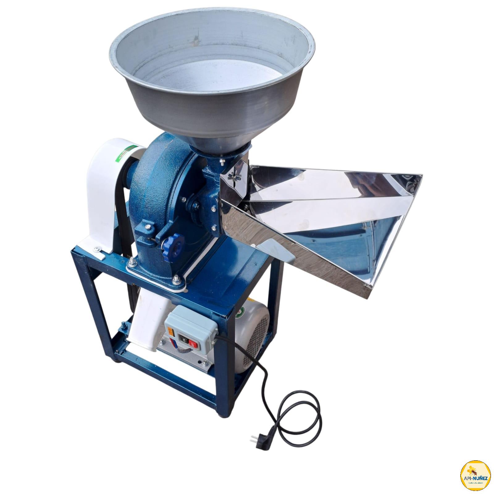 MOLINO 3.5KW 4.5 HP DOBLE TOLVA Molino eléctrico de alto rendimiento diseñado especialmente para el sector apícola o uso general. Equipado con un motor de 3.5 kW (4.5 HP) y un eficiente sistema de molienda por martillos, este equipo permite procesar con facilidad alimentos para abejas como azúcar, cereales, polen seco, levaduras, entre otros. Gracias a su doble tolva, ofrece versatilidad para trabajar distintos productos o realizar mezclas en un solo paso. Ficha Técnica Modelo: BL-200 Potencia del motor (kW): 3.5 Voltaje nominal (V): 220 Frecuencia (Hz): 50 Velocidad del husillo (r/min): 6200–6500 Peso: 60 Nivel de impermeabilidad: IPX1 Producción de Material Principal Tipos de material – diámetro (mm) – Producción (kg/h): Granos enteros – 1.2 – 70–90 Granos enteros – 2.0 – 100–150 Granos enteros – 3.0 – 150–200 Harina de arroz glutinoso – 0.6 – 40–60 Harina de arroz glutinoso – 3.0 – 150–200 Cáscaras de soja – 1.2 – 30–50 Cáscaras de soja – 2.0 – 40–60