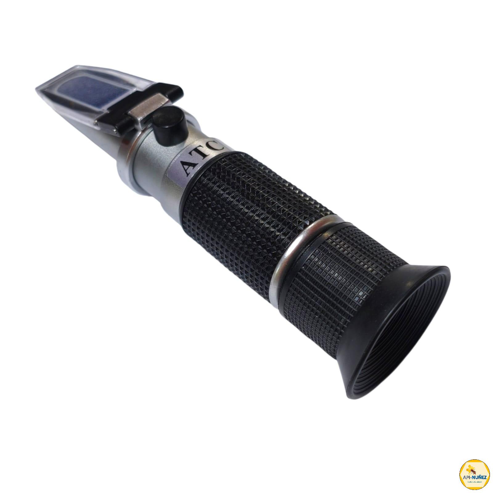 El refractómetro análogo con ATC es un instrumento óptico portátil utilizado en apicultura para medir el contenido de humedad de la miel. Funciona midiendo el índice de refracción de la luz al pasar a través de una pequeña muestra de miel, lo cual se relaciona directamente con su concentración de azúcares y porcentaje de agua.