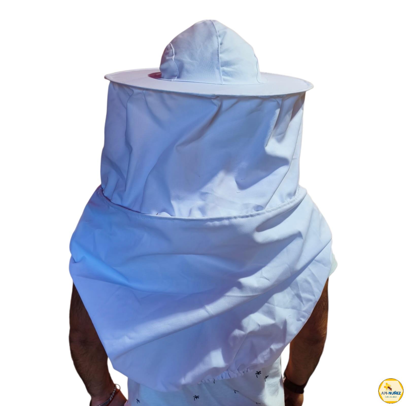 Velo apícola elasticado a medio torso, diseñado para brindar protección integral del rostro, cuello y parte superior del cuerpo durante las labores apícolas. Confeccionado en malla resistente y transpirable, permite una excelente visibilidad y ventilación, reduciendo la incomodidad en jornadas prolongadas.