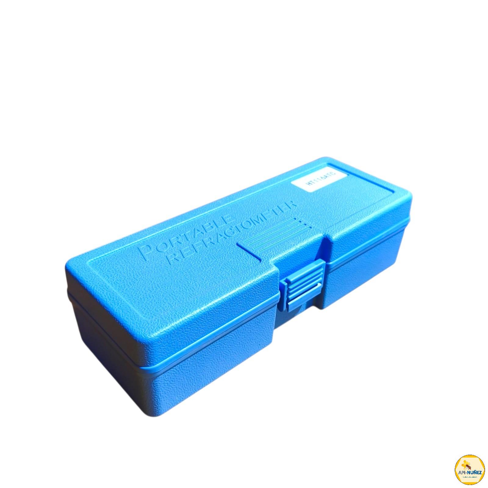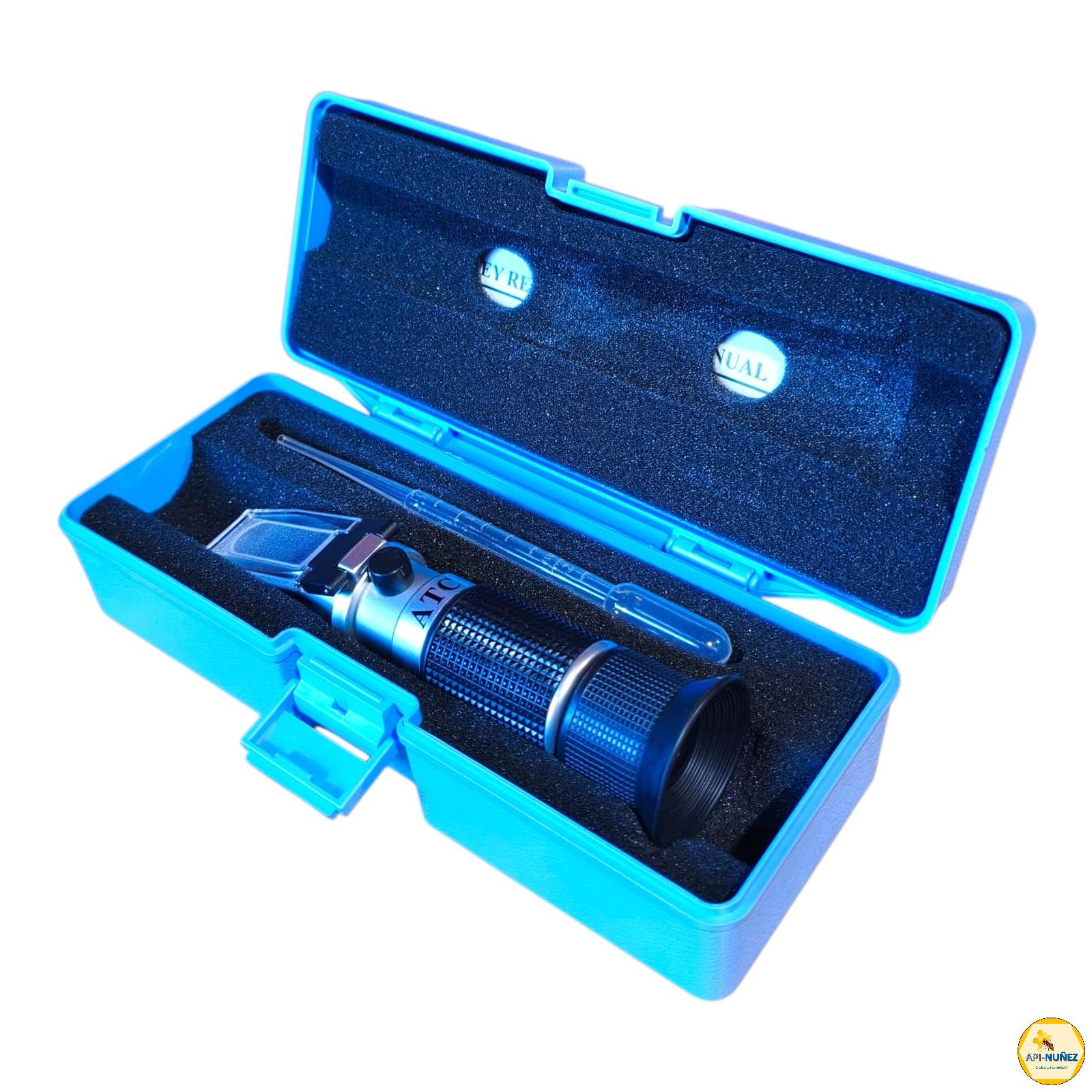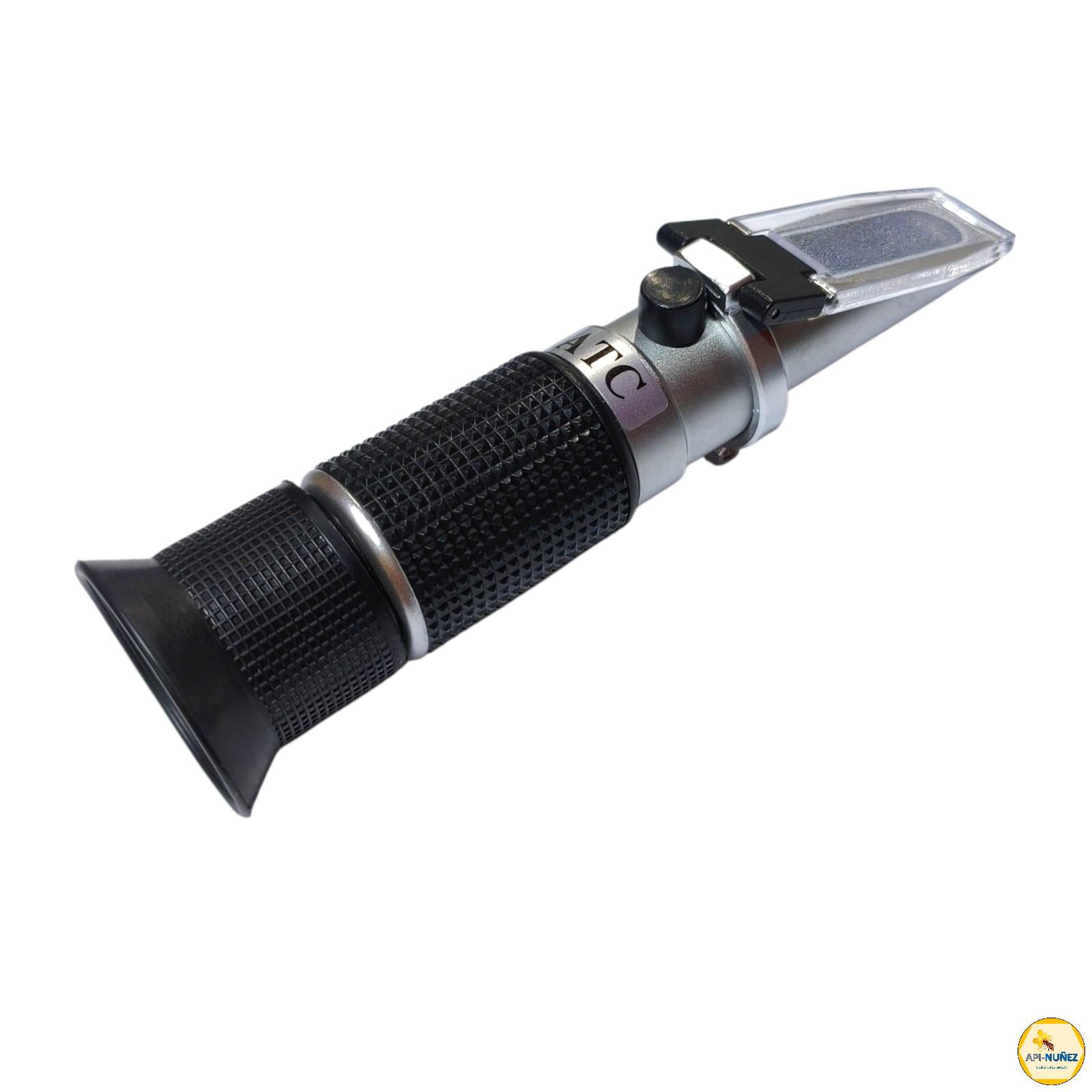 El refractómetro análogo con ATC es un instrumento óptico portátil utilizado en apicultura para medir el contenido de humedad de la miel. Funciona midiendo el índice de refracción de la luz al pasar a través de una pequeña muestra de miel, lo cual se relaciona directamente con su concentración de azúcares y porcentaje de agua.